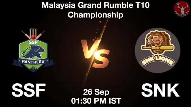 Welcome to the thrilling encounter in the Malaysia Grand Rumble T10 Championship where the SSF Panthers face off against the SNK Lions. Scheduled for Thursday, 26th September 2024, at 01:30 PM (IST), this match promises high-octane action and explosive performances. The Panthers, known for their aggressive batting and strong bowling lineup, will look to set a formidable target. Meanwhile, the Lions, with their balanced squad and chasing prowess, aim to outsmart their opponents. Expect fireworks as both teams battle for vital points in this exciting format!