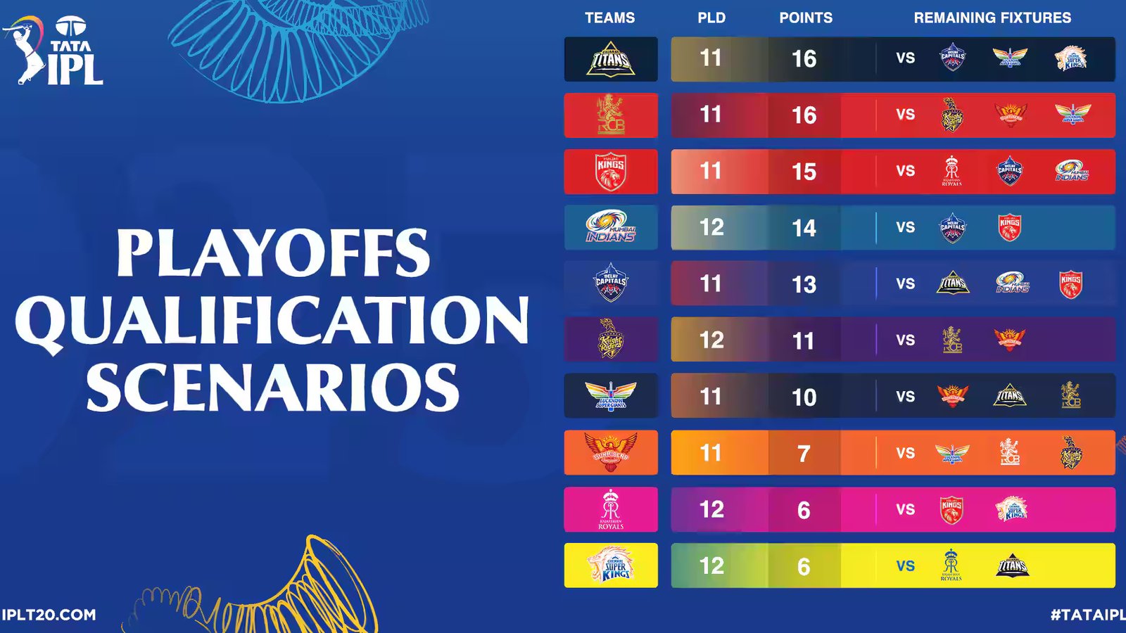 TATA IPL 2025 – Playoffs Qualification Scenarios !